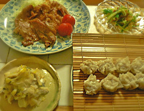 暑い・・生姜強めの豚生姜 シュウマイ キュウリ中華クラゲ 小肌ガリ