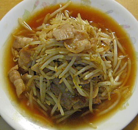 肉ともやしの炒め物、晩御飯だけならそんなにいらないですが明日の弁当を兼ねてです、